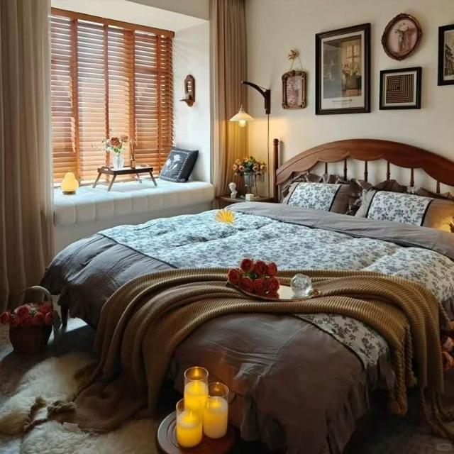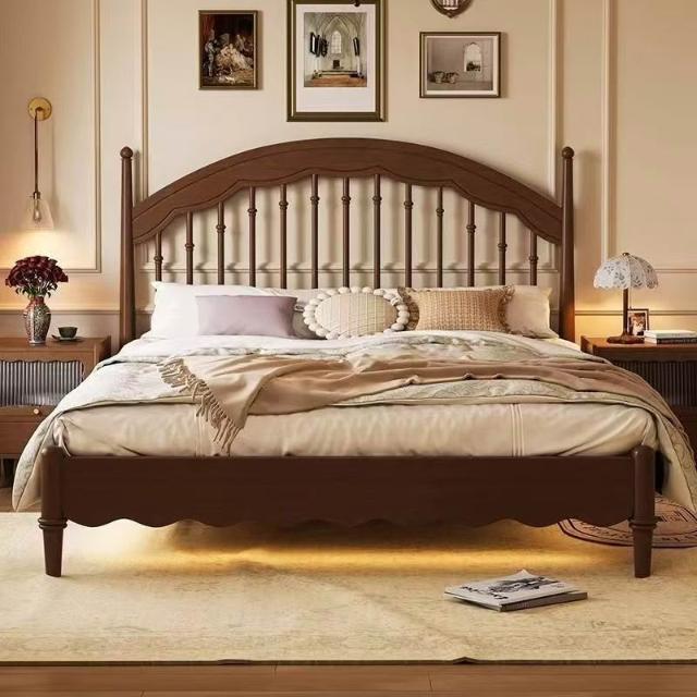 全實木溫莎床 中古風主臥美法式復古雙人床 新中式胡桃木色豎琴大床 MMLD1120D