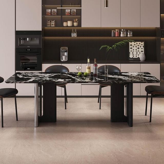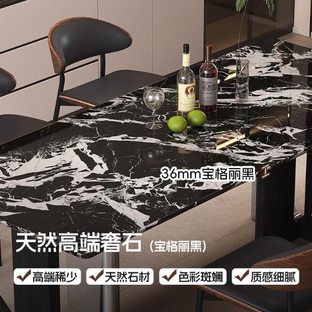 天然奢石餐桌寶格莉黑餐桌意式輕奢設計師款大理石長方形餐桌椅 MMLD1121D