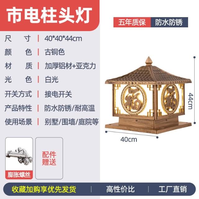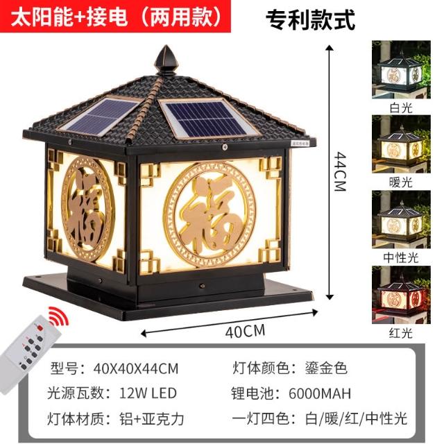 太陽能柱頭燈 戶外防水花園圍墻庭院燈 家用別墅陽臺大門福字柱子燈