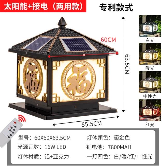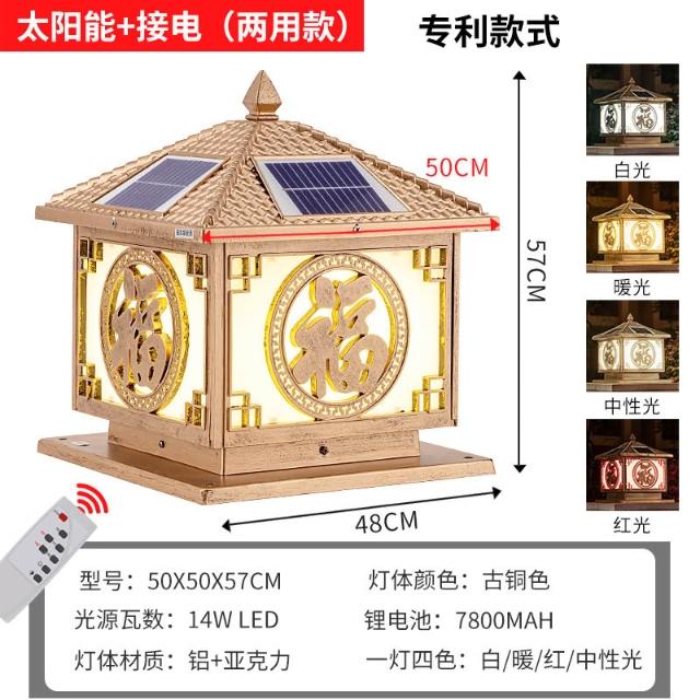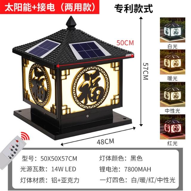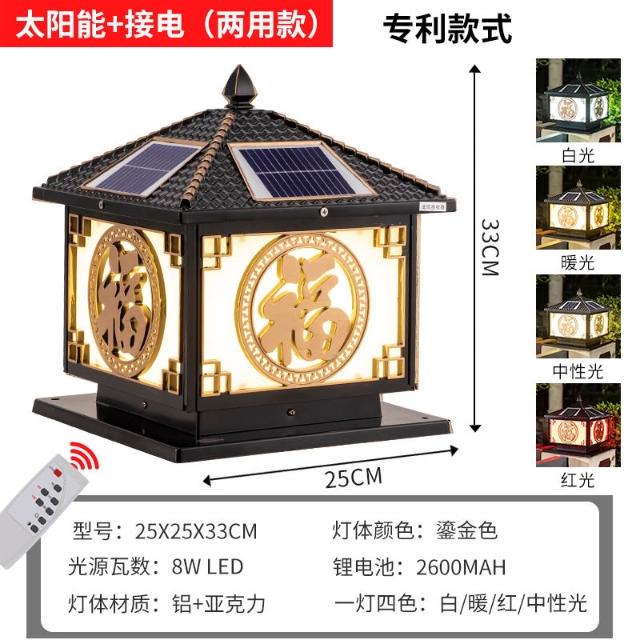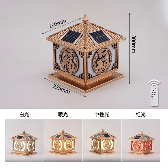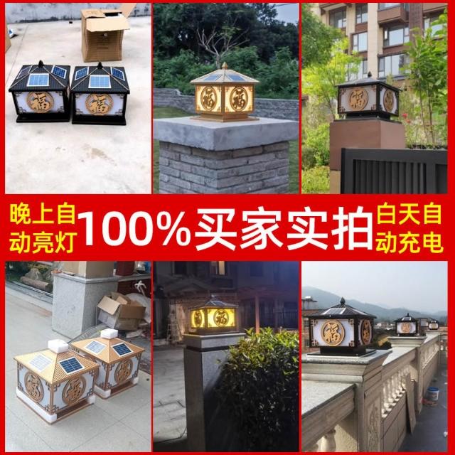 太陽能柱頭燈 戶外防水花園圍墻庭院燈 家用別墅陽臺大門福字柱子燈