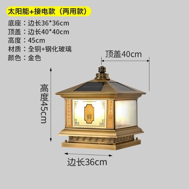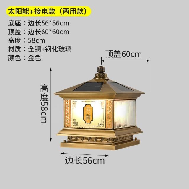 太陽能全銅柱頭燈 戶外庭院燈 別墅大門燈 門柱燈 院子圍墻燈 柱子燈