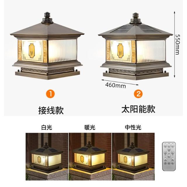 太陽能全銅柱頭燈 戶外庭院燈 別墅大門燈 門柱燈 院子圍墻燈 柱子燈