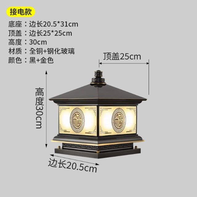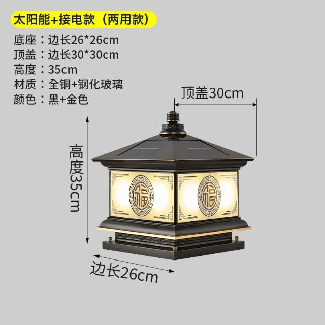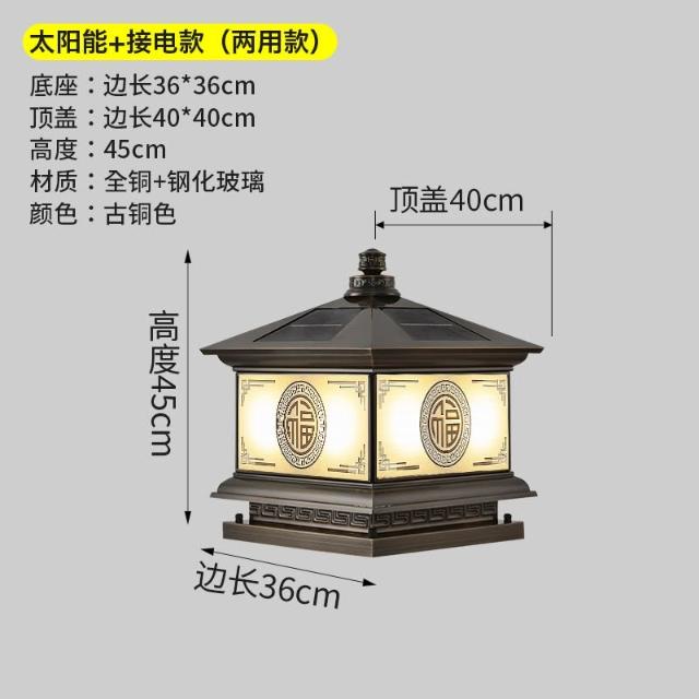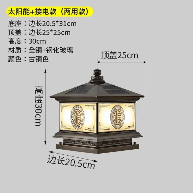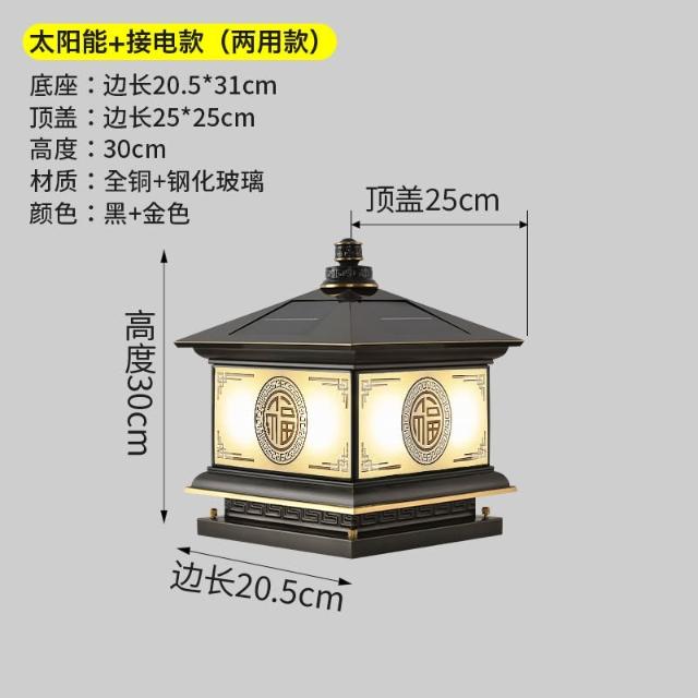 全銅太陽能燈 中式接電庭院柱頭燈 戶外防水別墅大門圍墻花園柱子燈