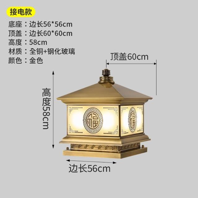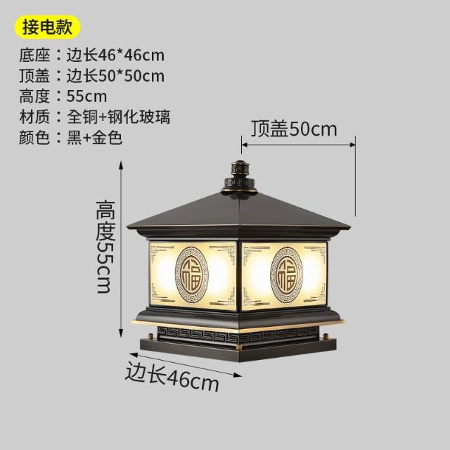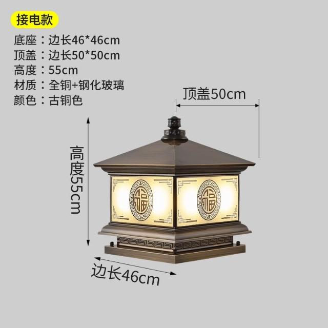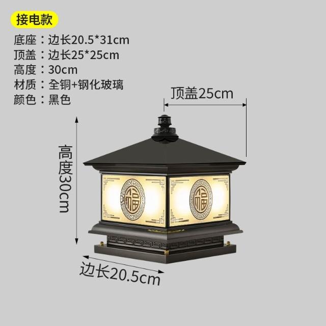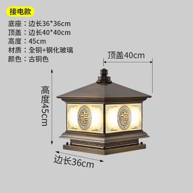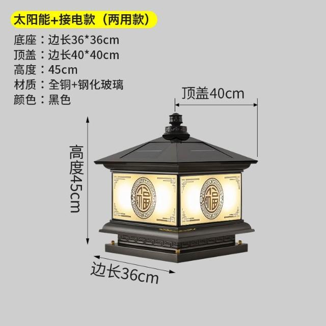 全銅太陽能燈 中式接電庭院柱頭燈 戶外防水別墅大門圍墻花園柱子燈