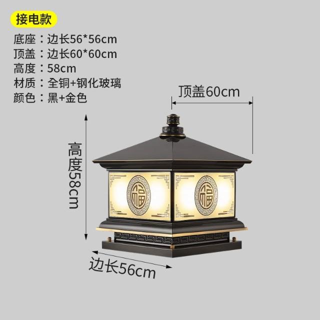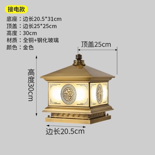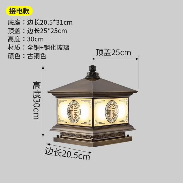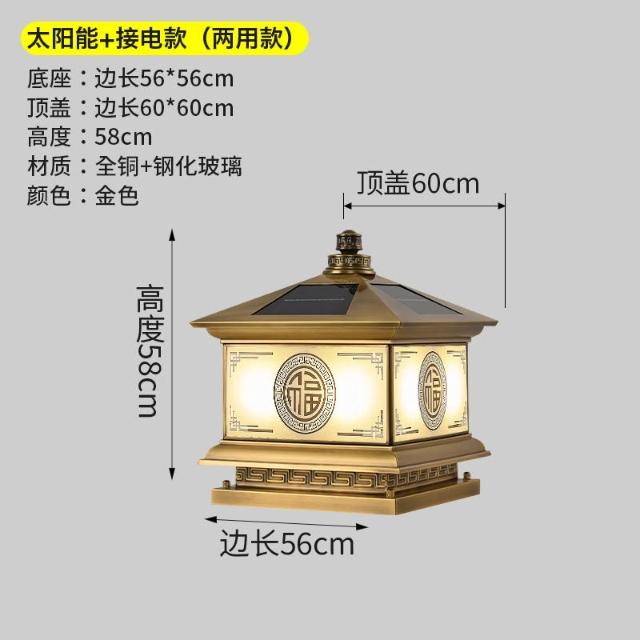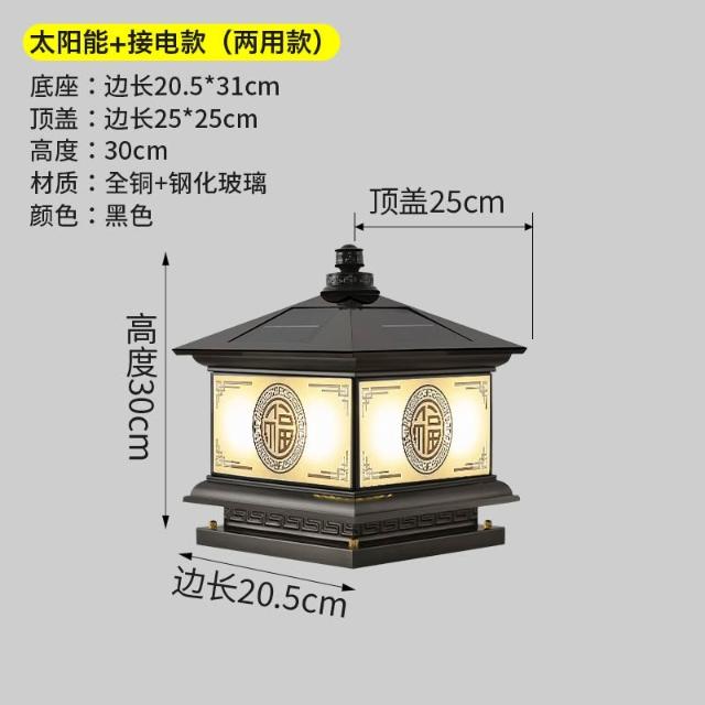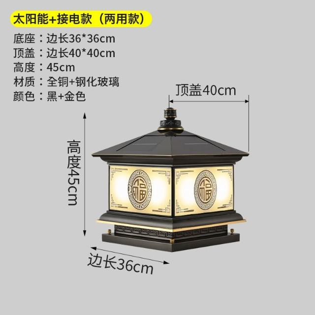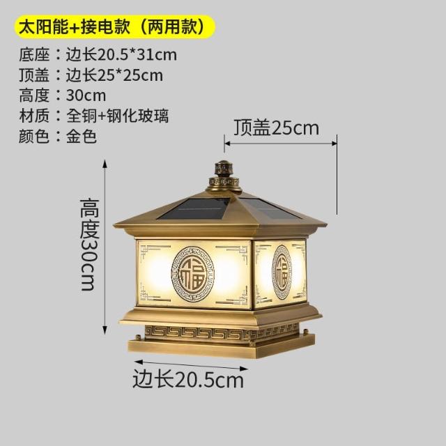 全銅太陽能燈 中式接電庭院柱頭燈 戶外防水別墅大門圍墻花園柱子燈