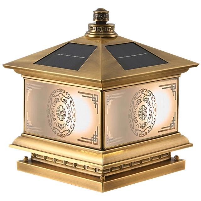 太陽能柱頭燈 全銅新中式戶外庭院燈 門柱燈 別墅大門燈 圍墻燈 柱子燈