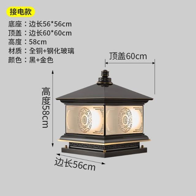 太陽能柱頭燈 全銅新中式戶外庭院燈 門柱燈 別墅大門燈 圍墻燈 柱子燈