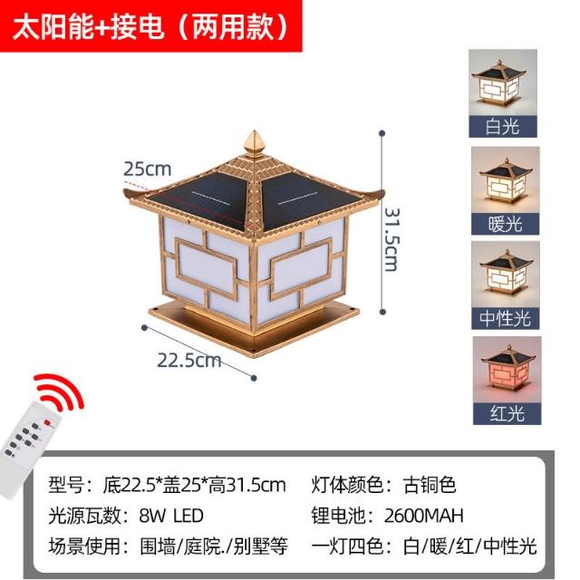 室外柱頭燈 太陽能大門柱燈 別墅圍墻戶外柱子燈 防水家門口庭院燈
