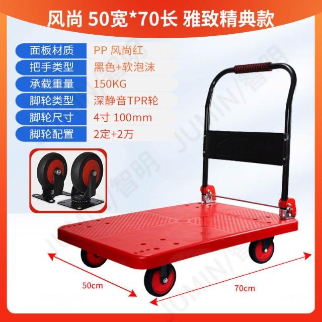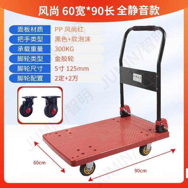 手推車 拉貨工具車 平板車 小推車 拖車 搬運橡膠靜音物流折疊智明優尚 MMLD1129D