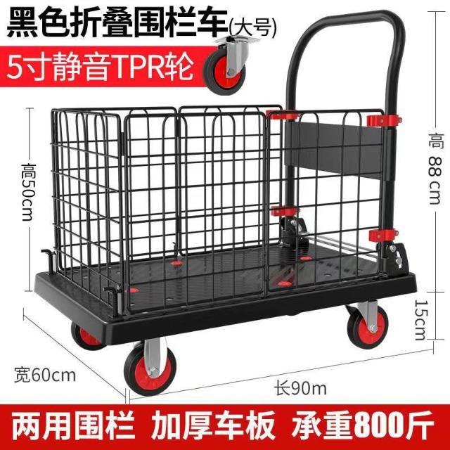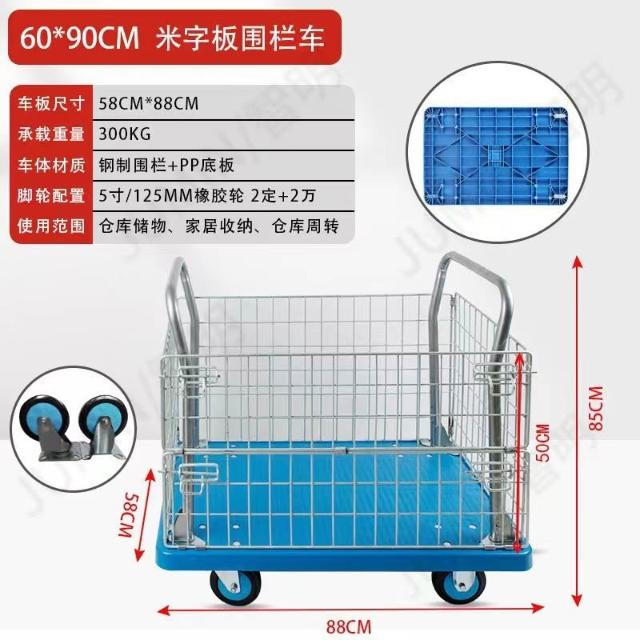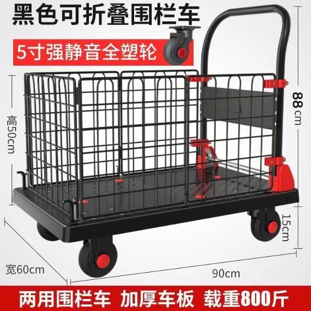 圍欄護欄平板車 折疊小推車 拖車 擺攤拉車 矮圍欄手推車 搬運車 拉貨車 MMLD1129D