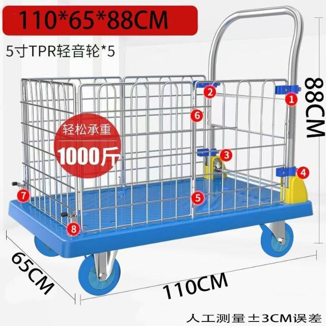圍欄護欄平板車 折疊小推車 拖車 擺攤拉車 矮圍欄手推車 搬運車 拉貨車 MMLD1129D