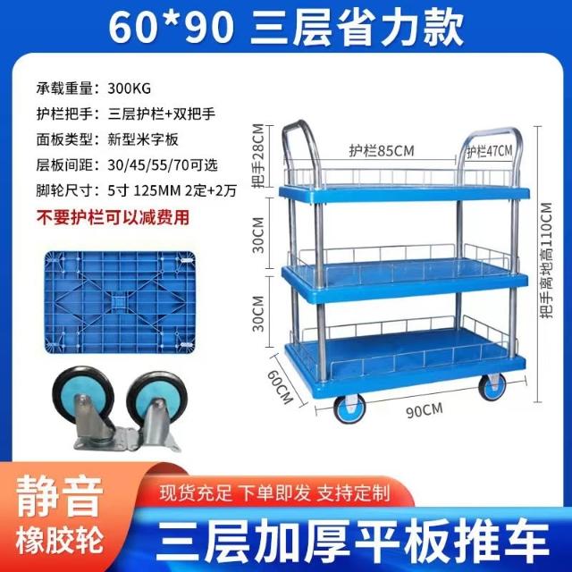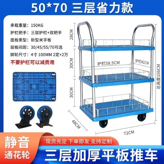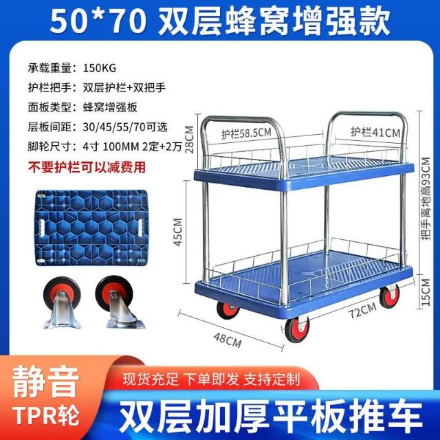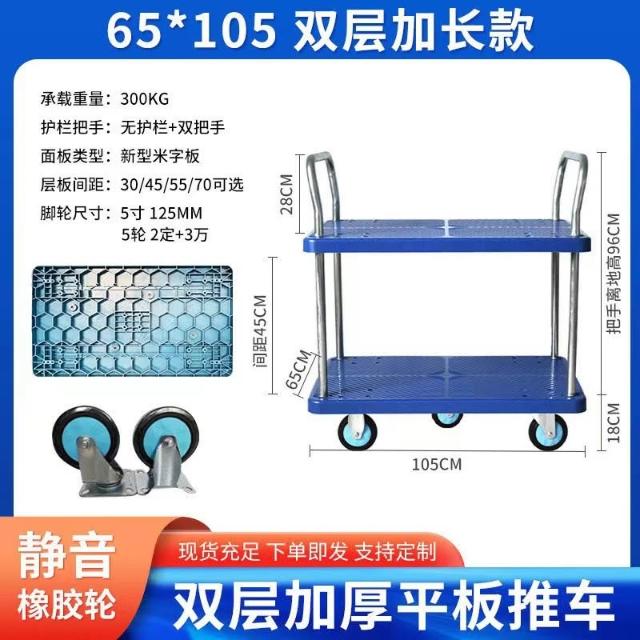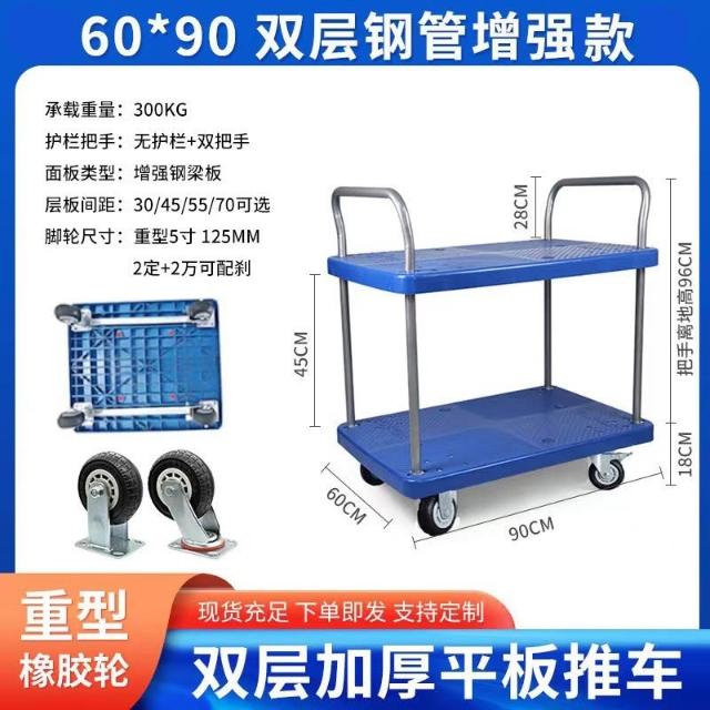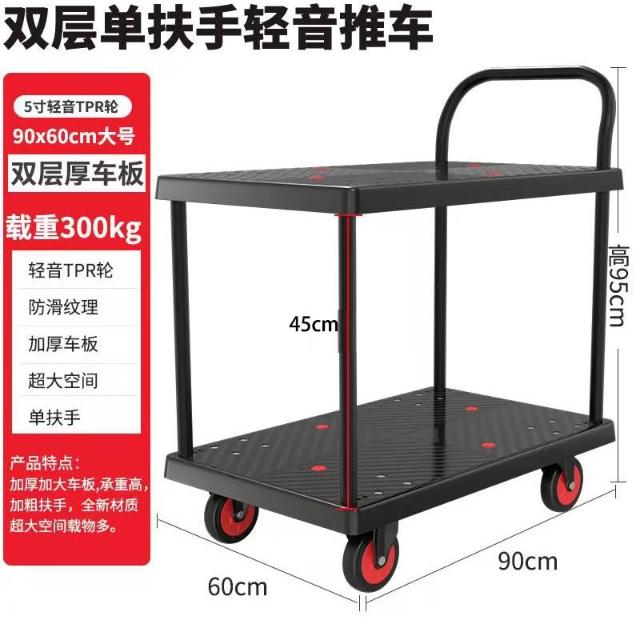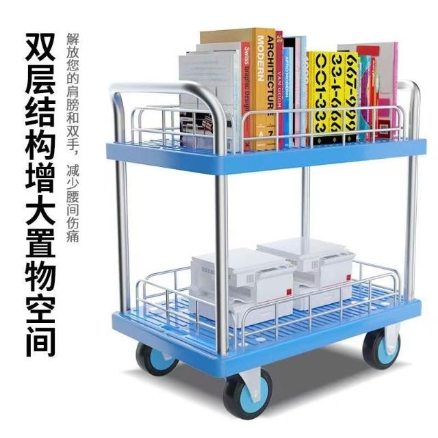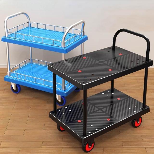 手推車 拖車 超市小推車 拉貨倉庫工具板車 平板車 加厚雙層平板手推車 MMLD1129D