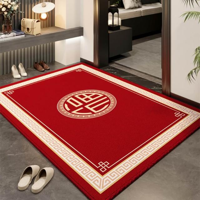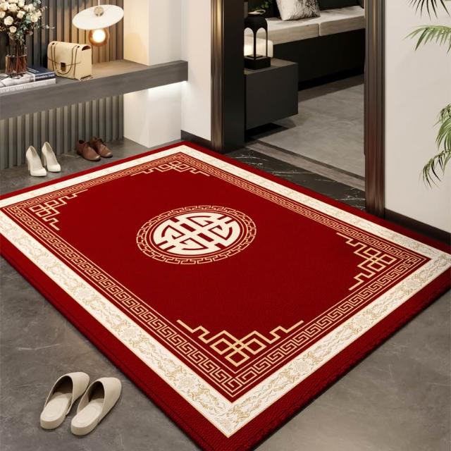 新中式門口進門 地墊 客廳門廳門墊 玄關入戶 地毯吸水防滑紅色踩腳墊 MMLD251205DD