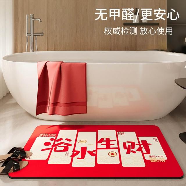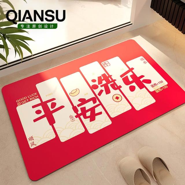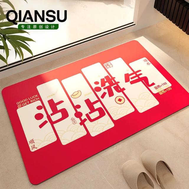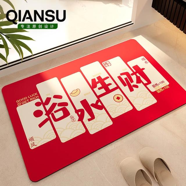 紅色喜慶浴室 地墊 吸水衛生間防滑腳墊 免洗可擦廁所門口 地毯洗澡 MMLD251205DD