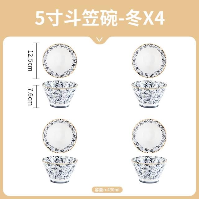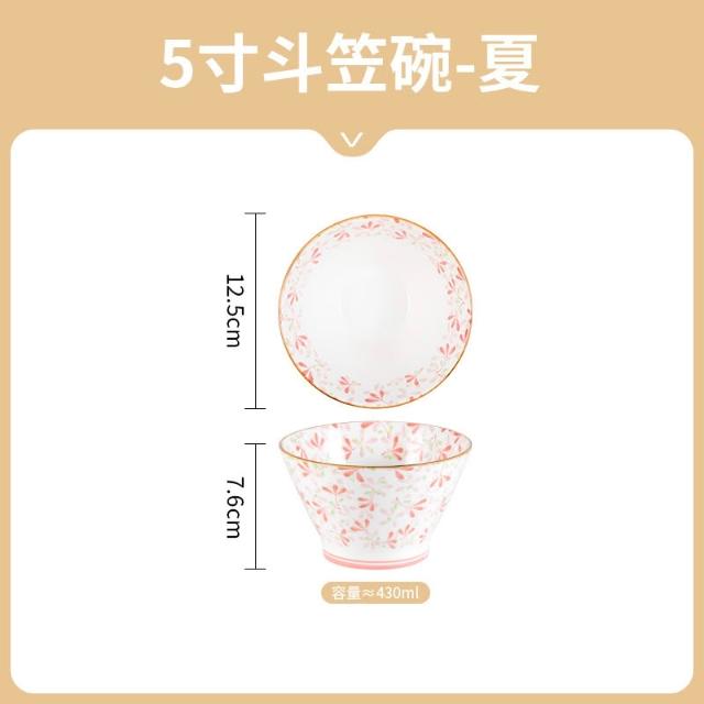 日式小清新高顏值家用陶瓷5寸斗笠碗陶瓷碗釉下彩米飯碗陶瓷餐具 MMLD251211DD