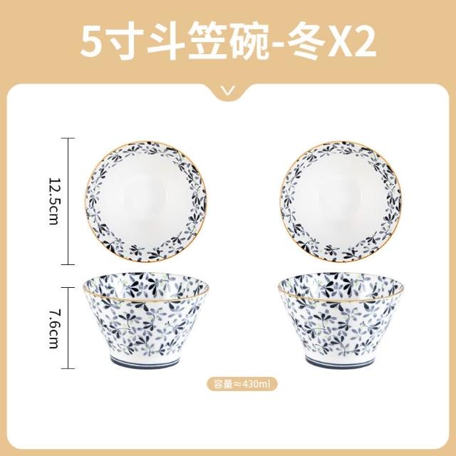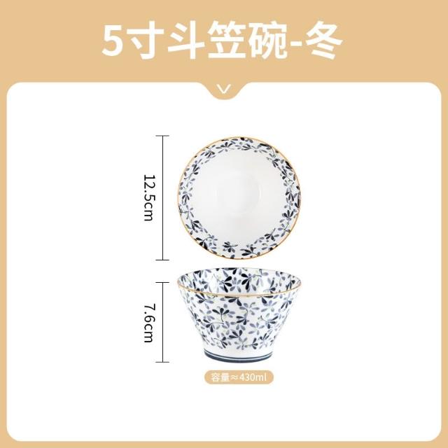 日式小清新高顏值家用陶瓷5寸斗笠碗陶瓷碗釉下彩米飯碗陶瓷餐具 MMLD251211DD