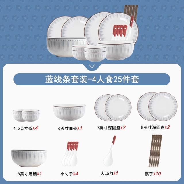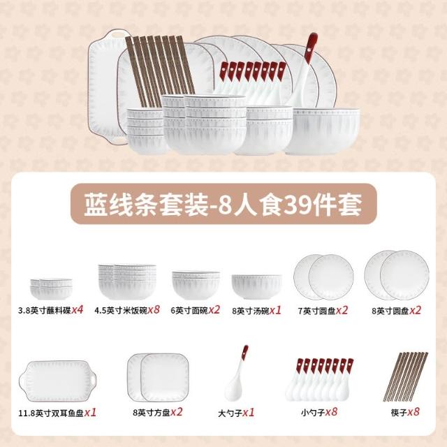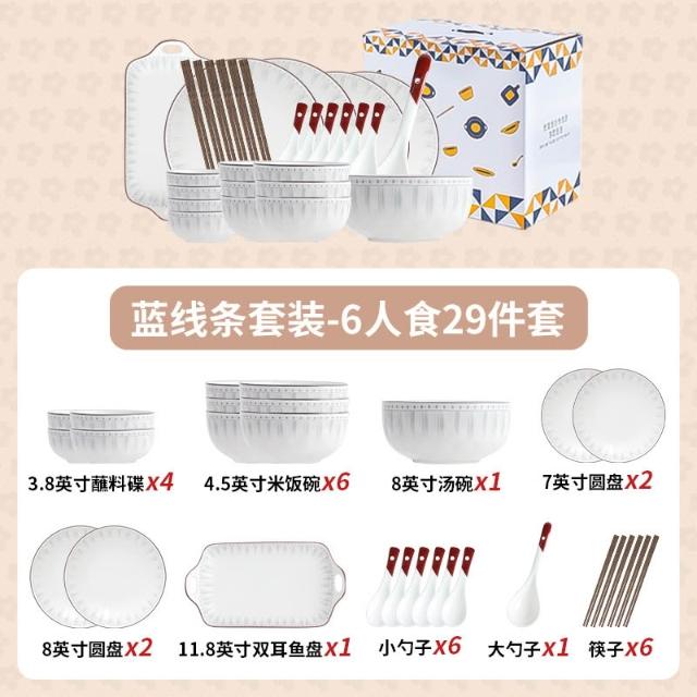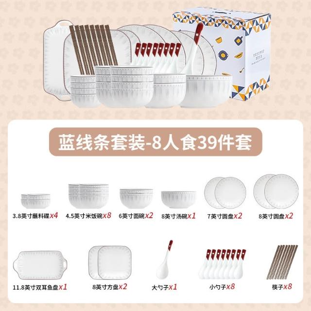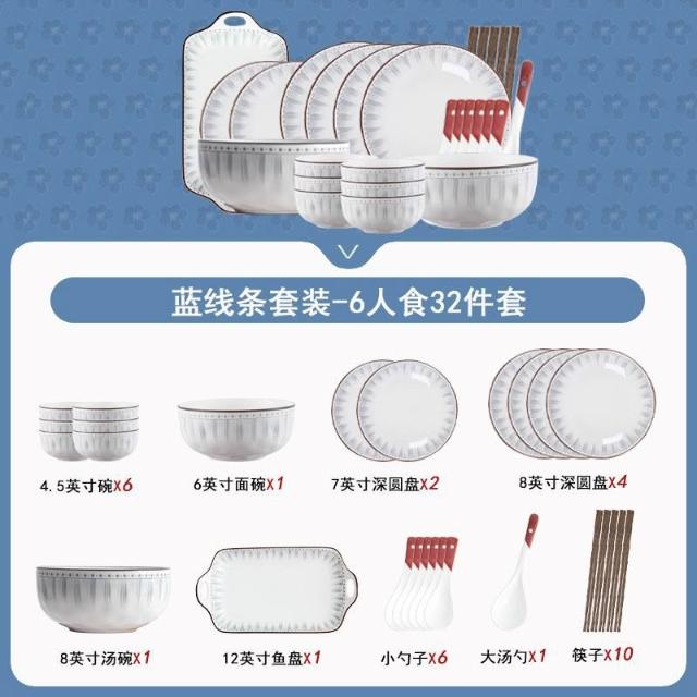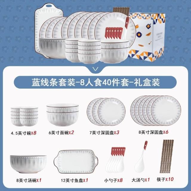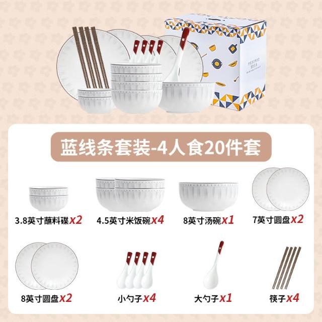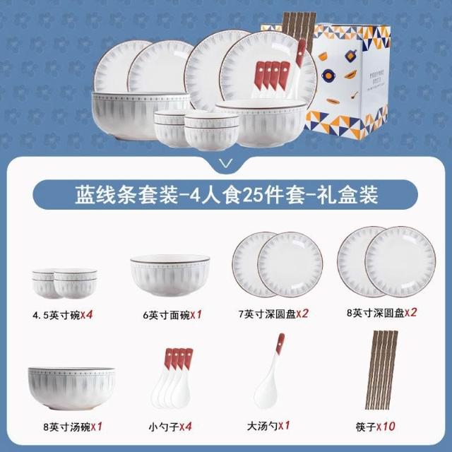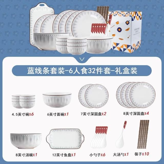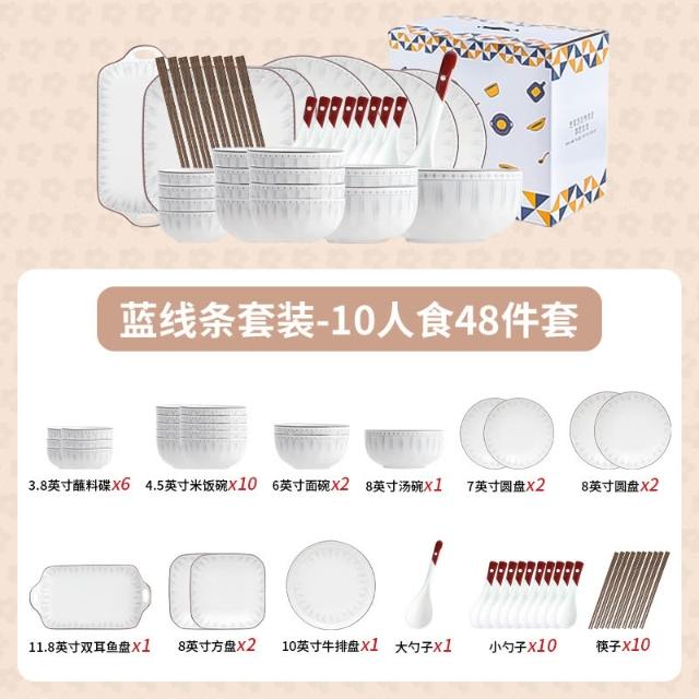 碗高顏值簡約釉下彩陶瓷餐具 碗碟套裝送禮喬遷陶瓷碗餐具 家用套裝 MMLD251211DD