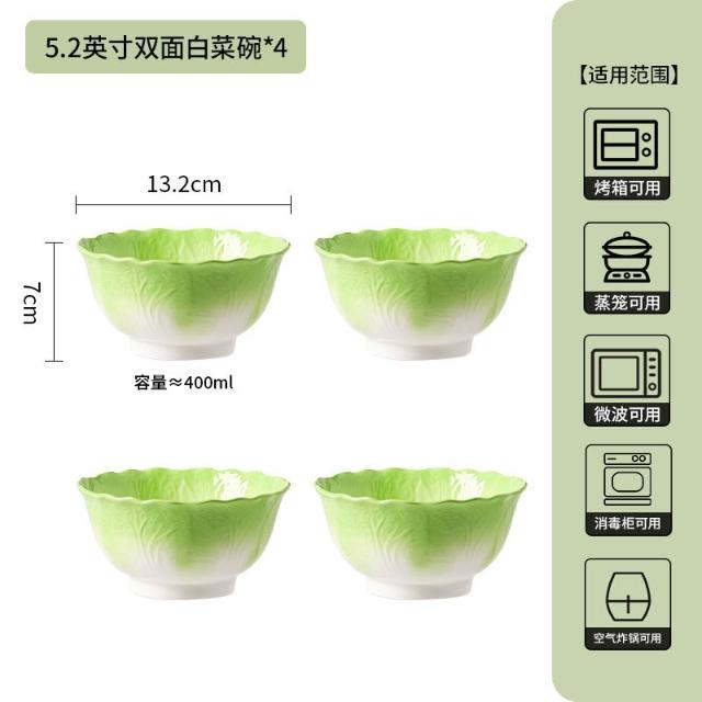 創意白菜造型陶瓷碗碟套裝家用釉下彩盤子米飯碗魚盤陶瓷餐具 MMLD251211DD