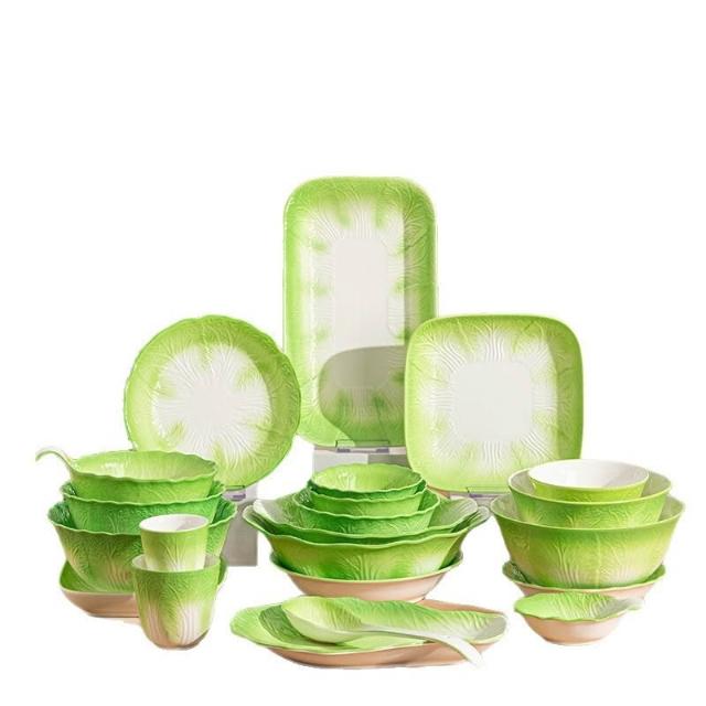 創意白菜造型陶瓷碗碟套裝家用釉下彩盤子米飯碗魚盤陶瓷餐具 MMLD251211DD