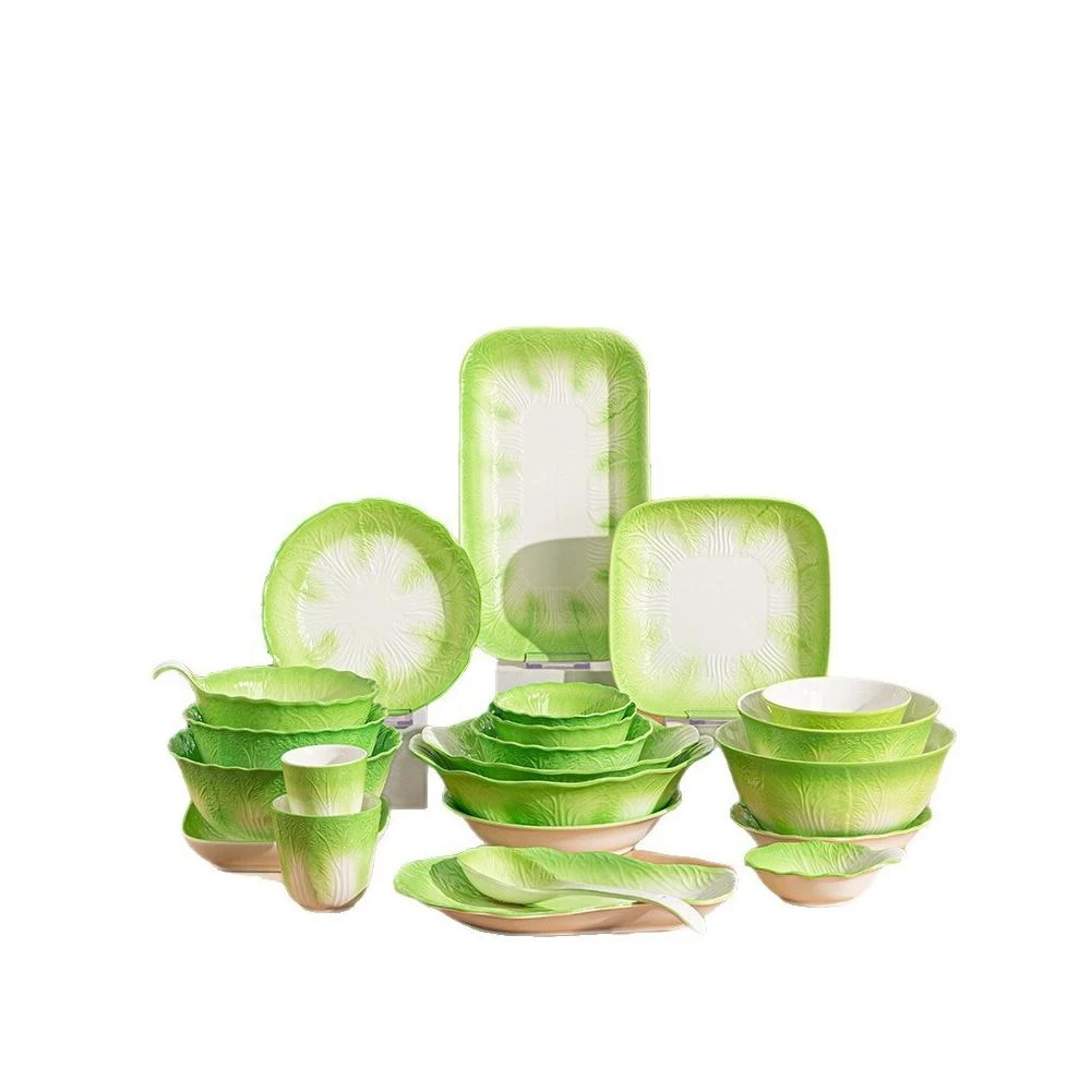 創意白菜造型陶瓷碗碟套裝家用釉下彩盤子米飯碗魚盤陶瓷餐具 MMLD251211DD