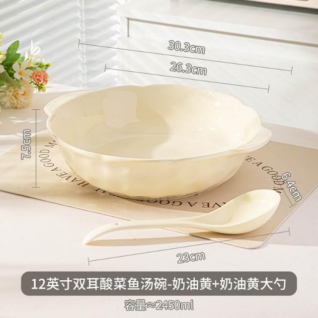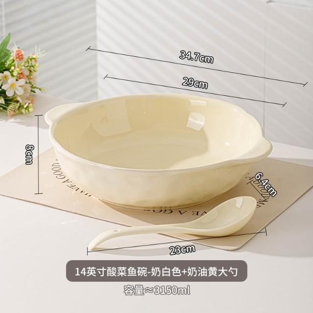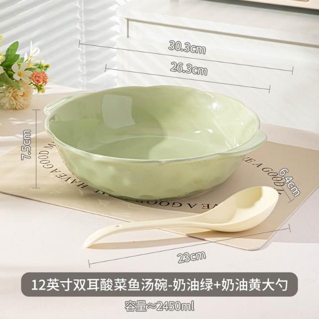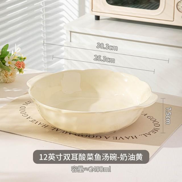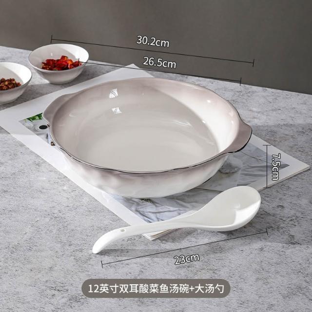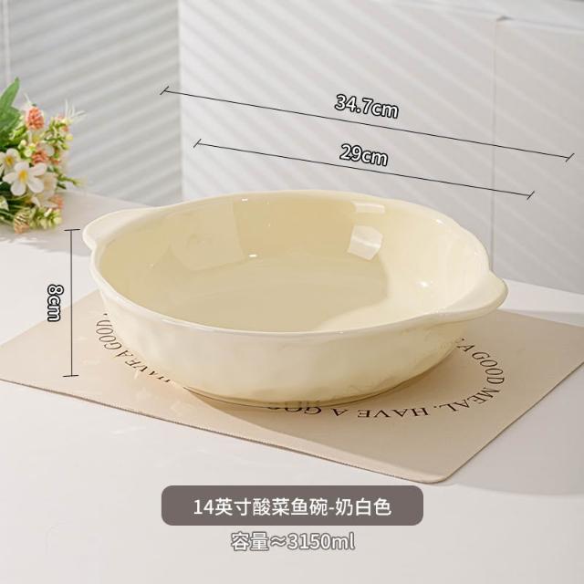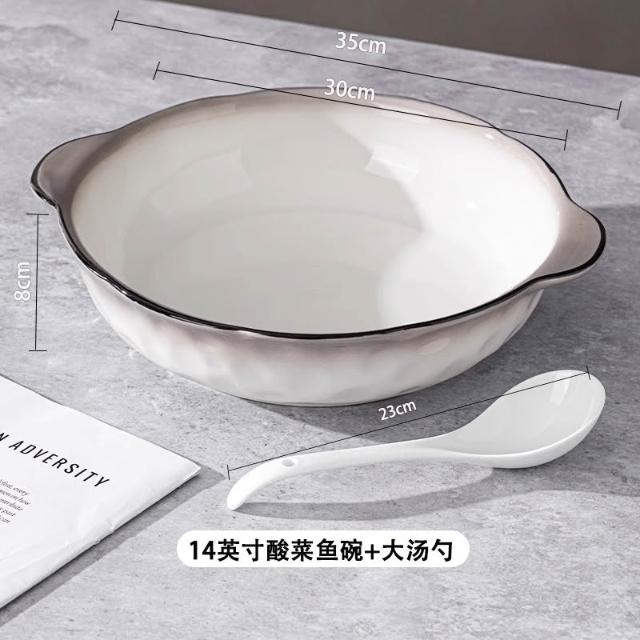 大容量ins風酸菜魚大盆碗家用餐廳水煮魚雙耳陶瓷湯碗大湯盆 MMLD251211DD