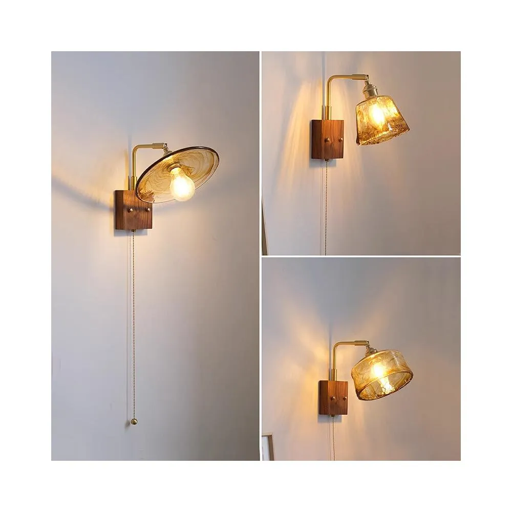 侘寂風復古全銅壁燈 臥室床頭拉鏈開關燈 民宿過道背景墻胡桃木燈具 MLD522121DD