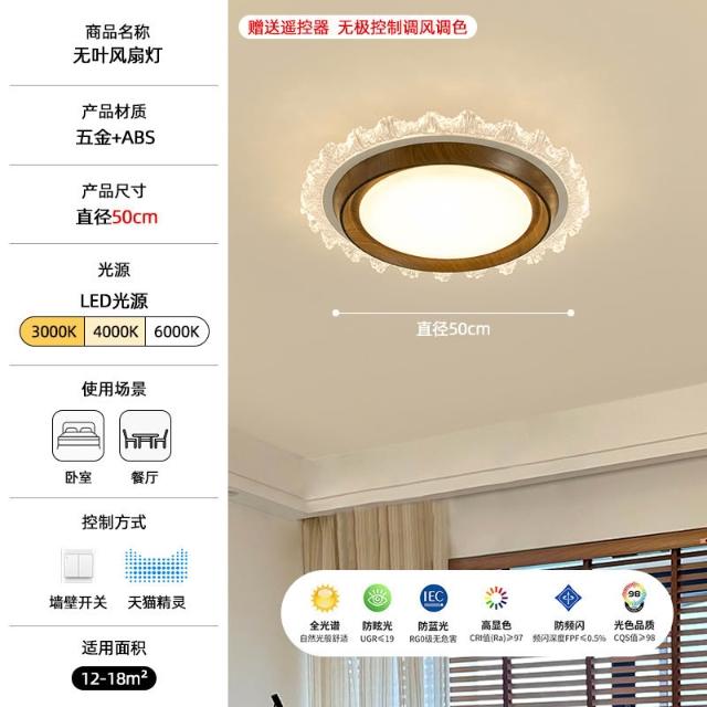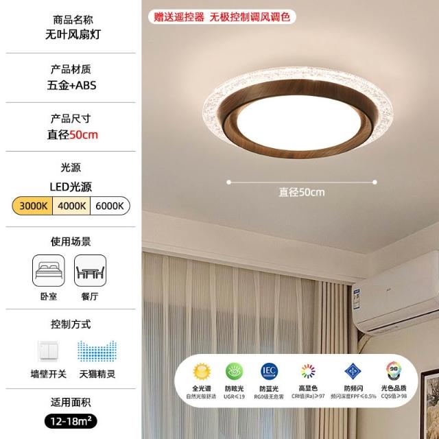 中古風胡桃木紋臥室無葉風扇燈 空氣凈化靜音隱形電扇一體吸頂燈具 MLD522121DD