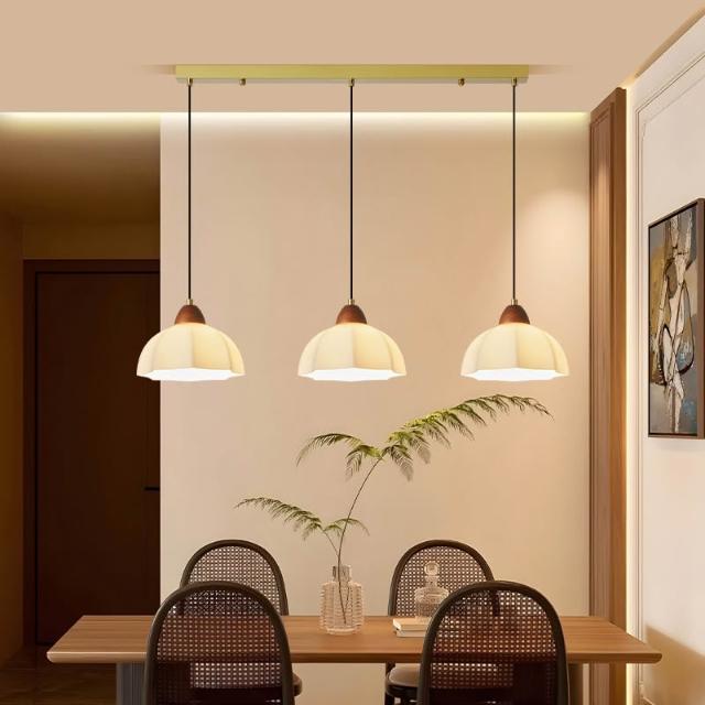 中古風法式餐廳吊燈 中式胡桃木色一字型玻璃罩吊線燈 MLD522121DD