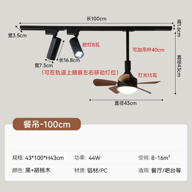 風扇餐廳吊燈 中古風木紋色可移動軌道吧臺島臺餐桌燈具 MLD522121DD