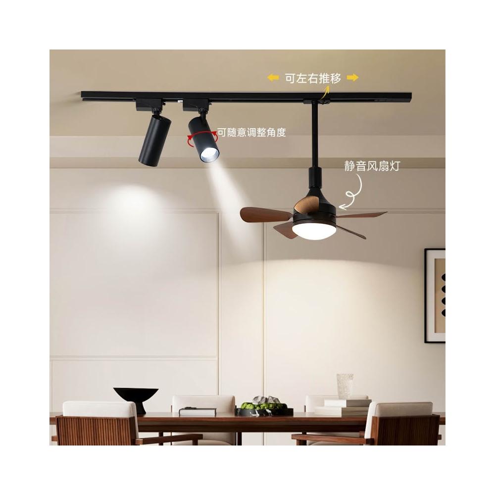 風扇餐廳吊燈 中古風木紋色可移動軌道吧臺島臺餐桌燈具 MLD522121DD