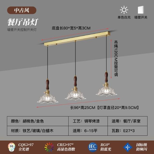 中古風三頭餐廳吊燈 設計師白蠟木餐桌燈具 法式復古吧臺臥室床頭燈 MLD522121DD