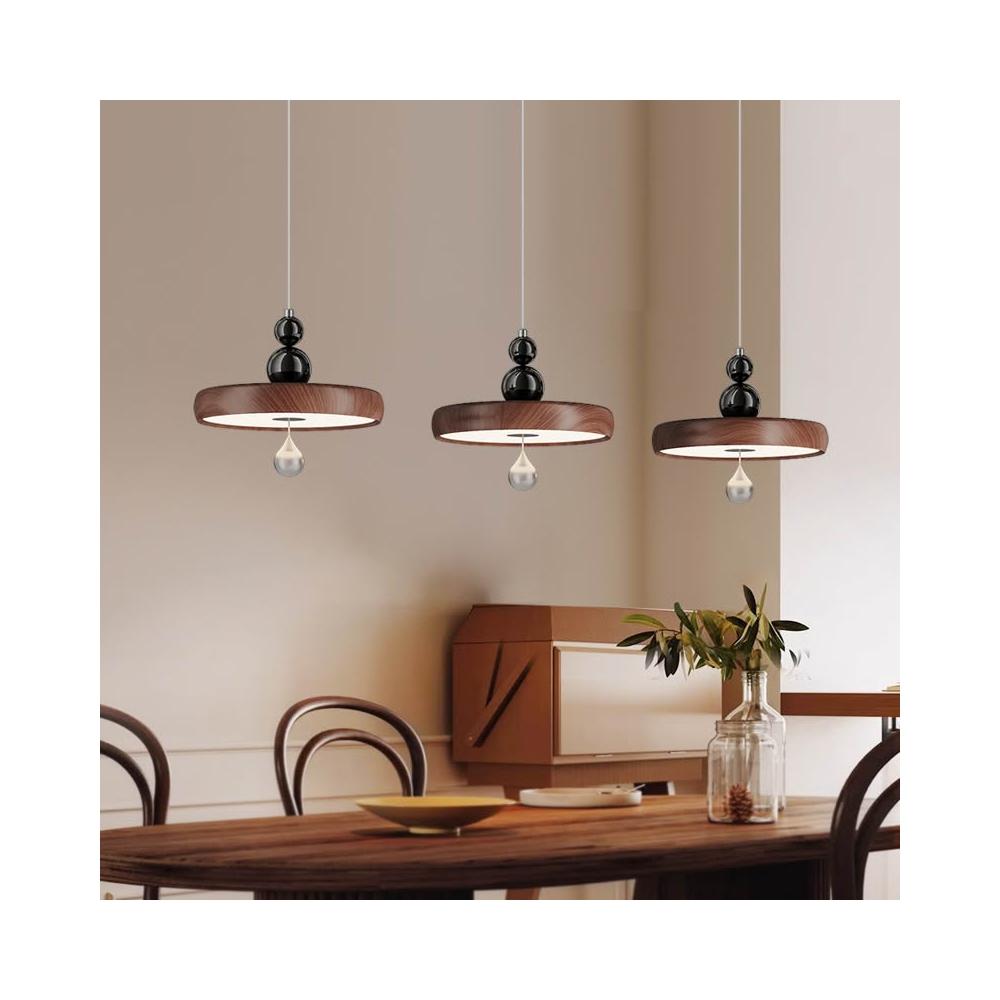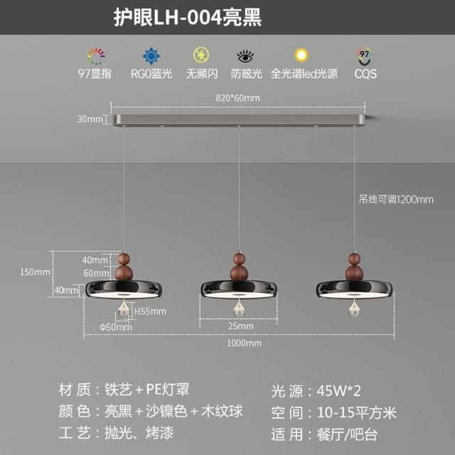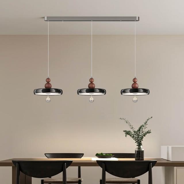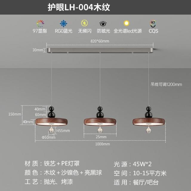 餐廳吊燈 中古風木紋家裝一字長條三頭吊線燈 簡約現代高級感飯廳燈 MLD522121DD