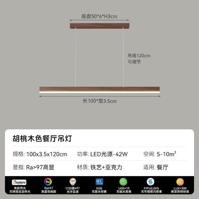 餐廳吊燈 極簡禪意胡桃木新中式中古風餐桌led一字長條燈具 MLD522121DD