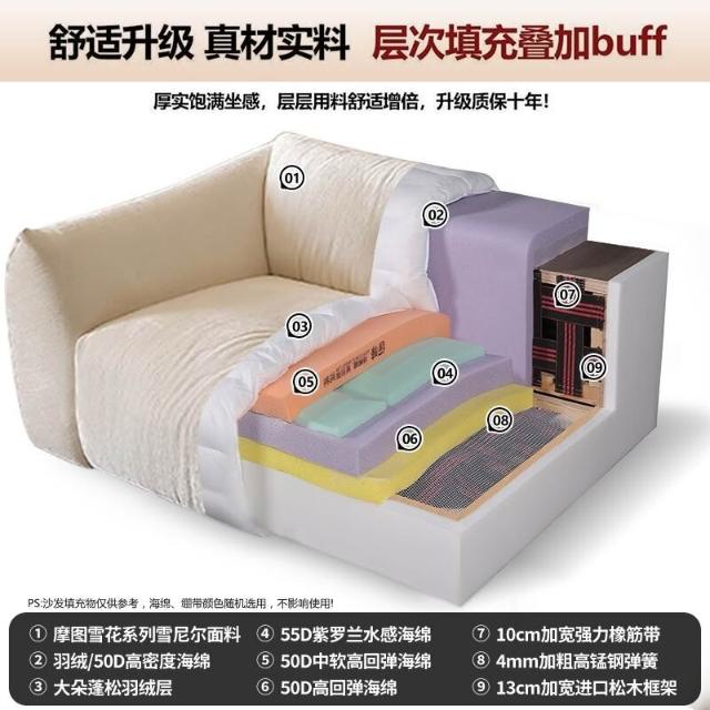 糯米糍棉麻沙發 客廳小戶型奶油風雪尼爾直排高靠背貓爪布藝沙發 MLDD251212DD