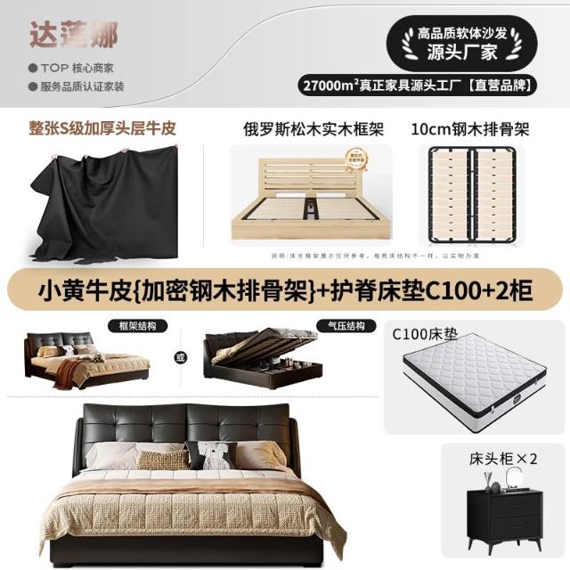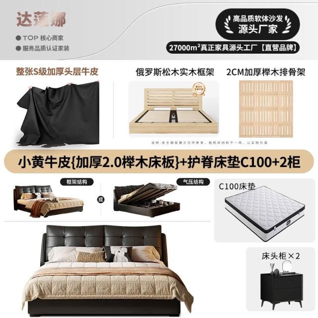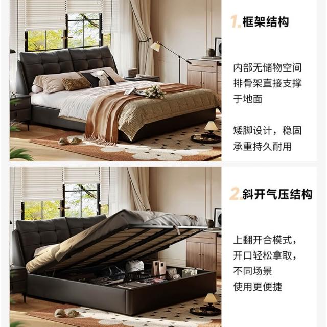 意式極簡落地真皮床儲物高箱床輕奢家用雙人軟包臥室床 MLDD251212DD