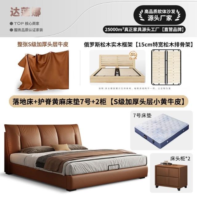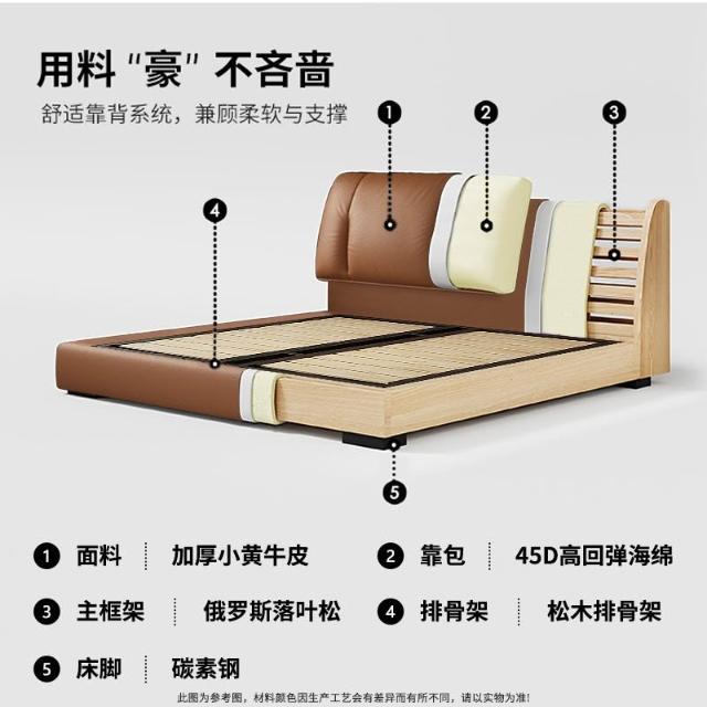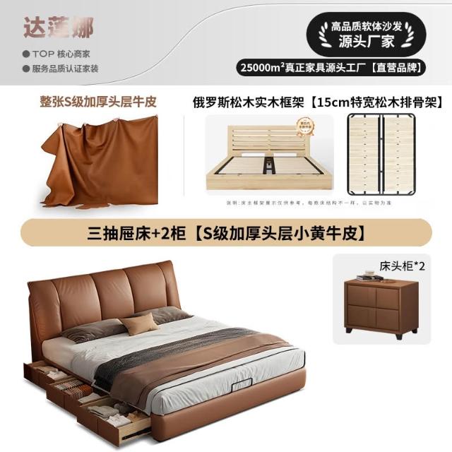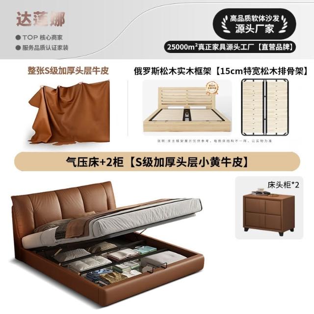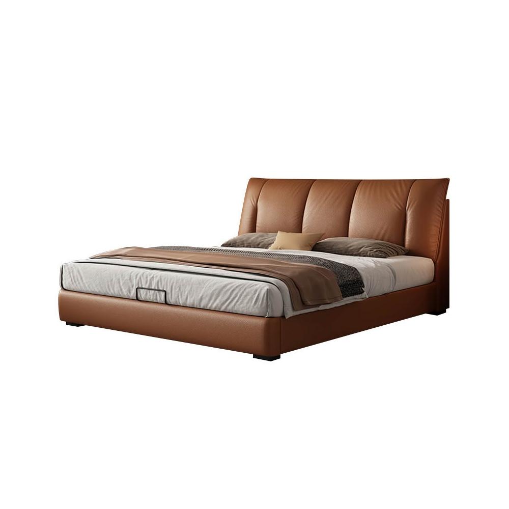 意式極簡真皮床頭層牛皮高端主臥1米8婚床高箱收納雙人軟包儲物床 MLDD251212DD