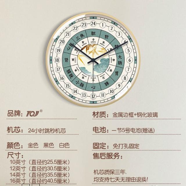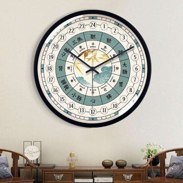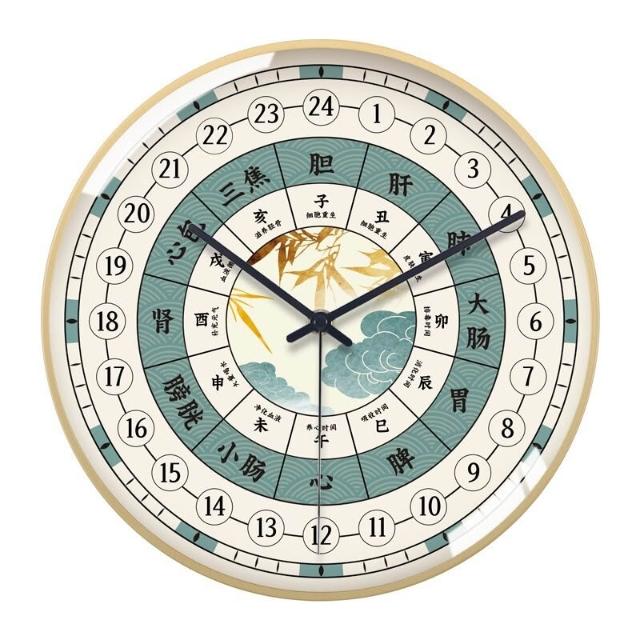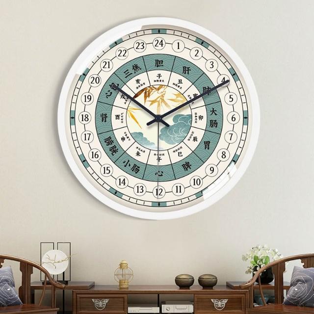 24小時制子午流注掛鐘美容院中醫養生館時鐘經絡十二時辰石英鐘表 MLDD251213DD