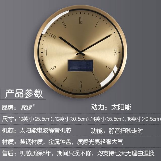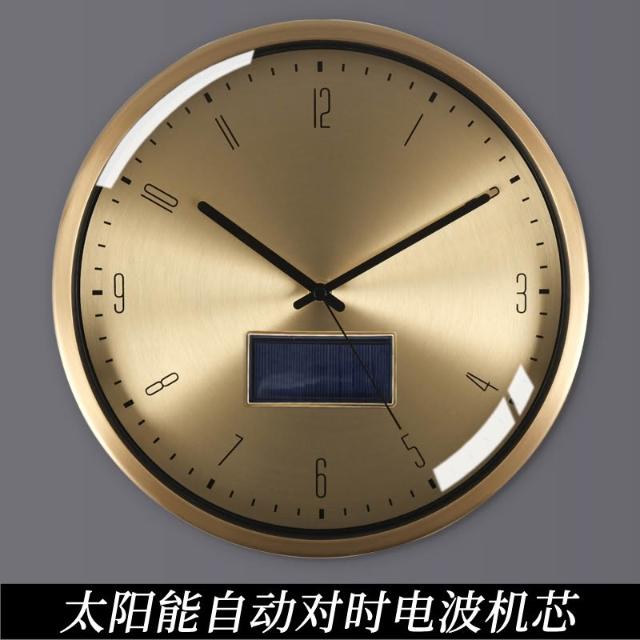 太陽能電波黃銅掛鐘客廳家用臥室靜音時鐘掛墻簡約輕奢石英表 MLDD251213DD