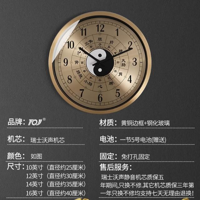 子午流注中醫養生館掛鐘八卦鐘表經絡十二時辰黃銅靜音電波石英鐘 MLDD251213DD