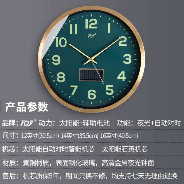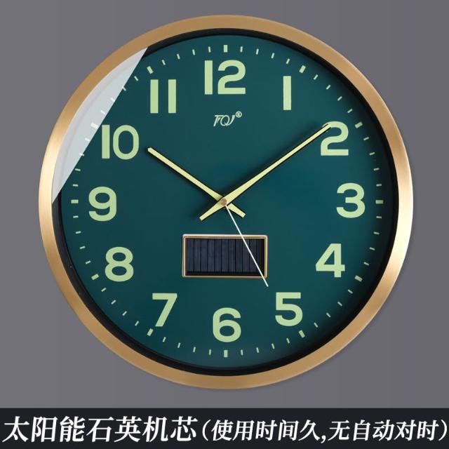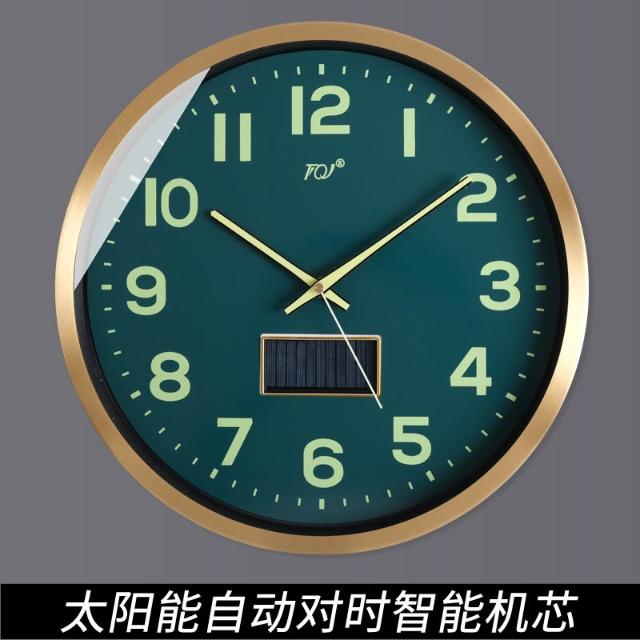 太陽能黃銅夜光靜音掛鐘創意家用時鐘表客廳簡約電波鐘石英表 MLDD251213DD