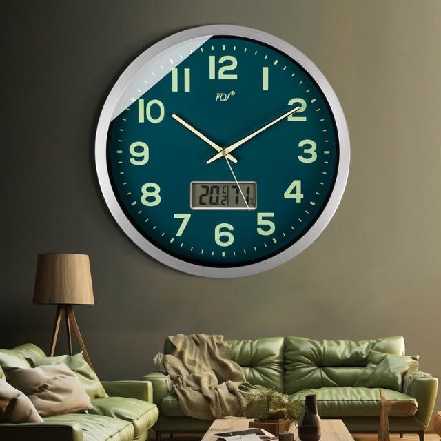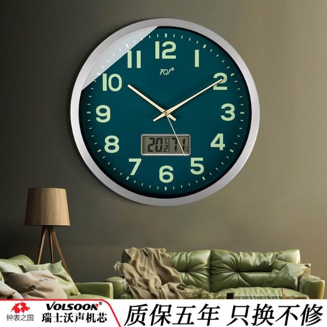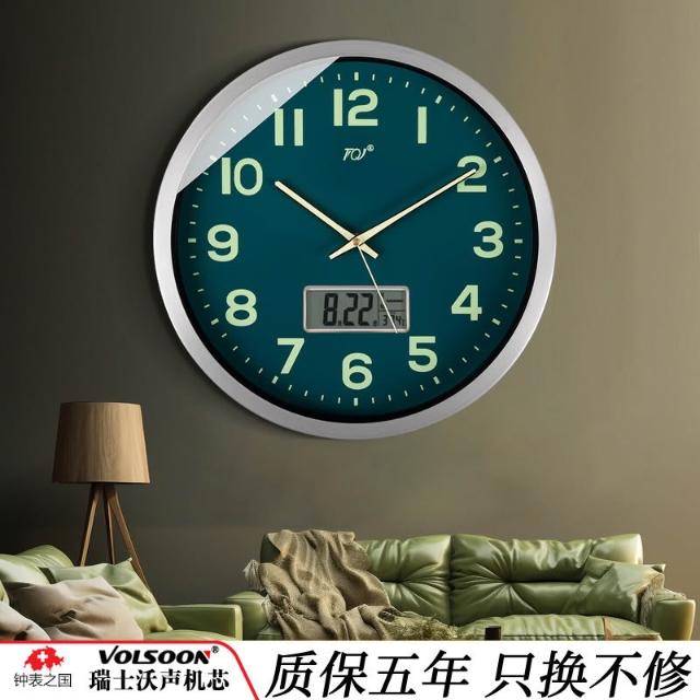 夜光簡約靜音掛鐘客廳創意日歷時鐘掛墻表臥室時尚鋁框石英鐘 MLDD251213DD