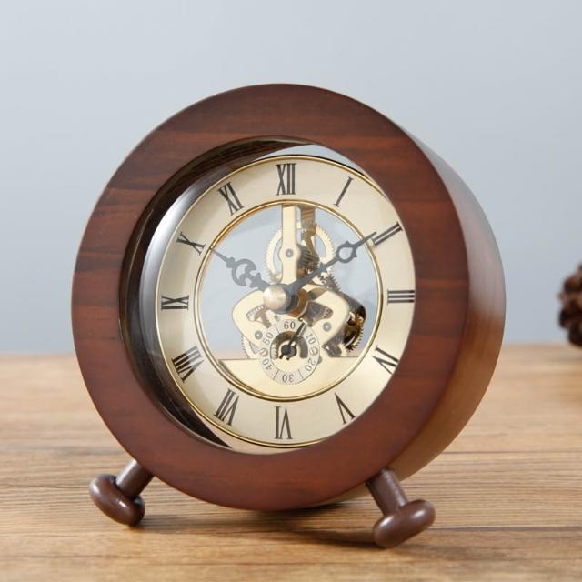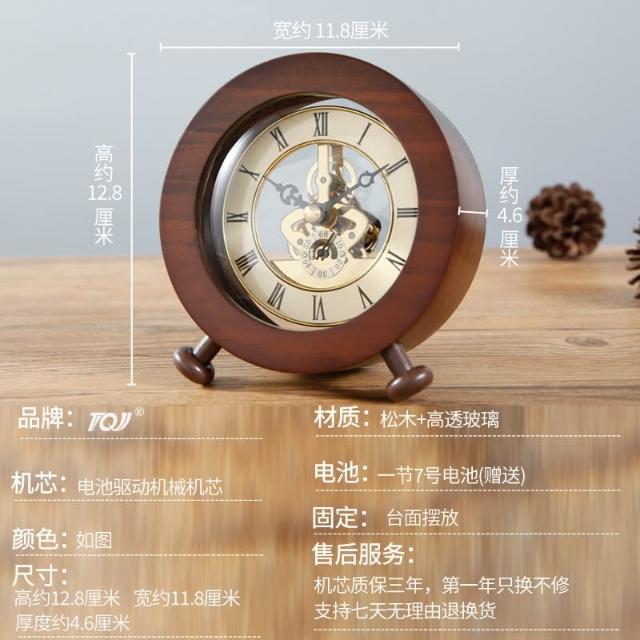 簡約實木機械座鐘家用臺式客廳坐鐘桌面透視鐘時尚臺面床頭表 MLDD251213DD