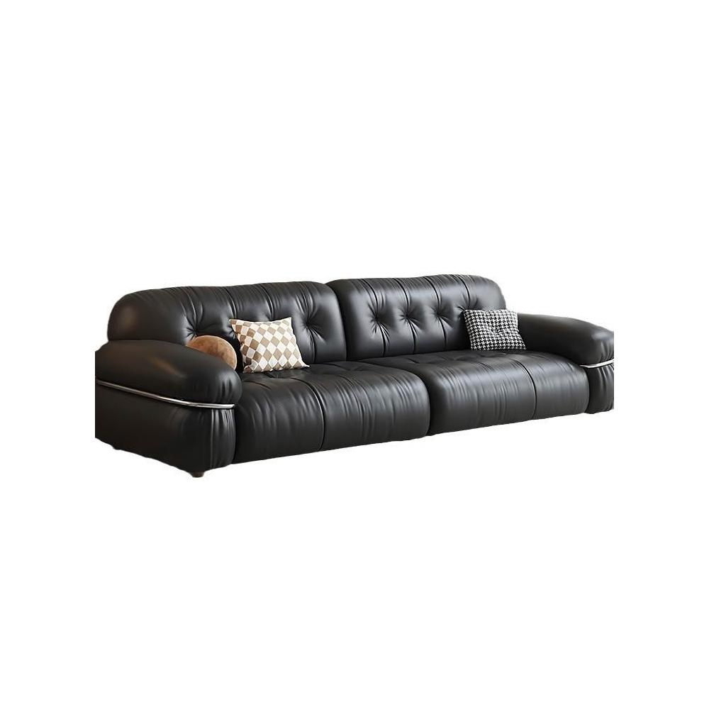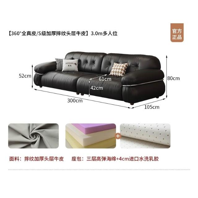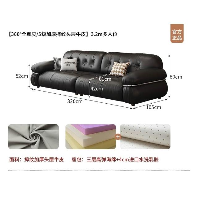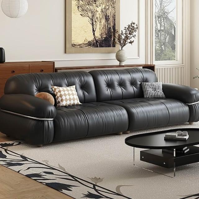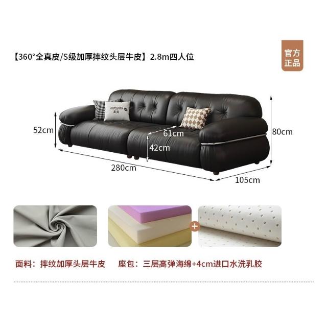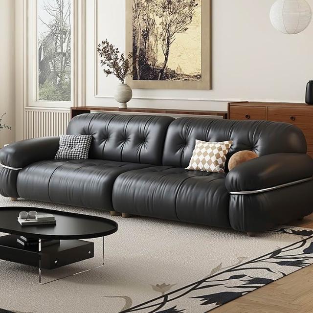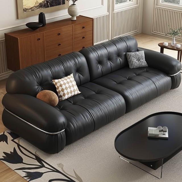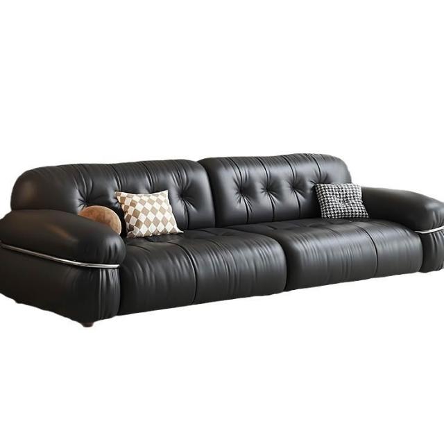 新式復古鋼圈沙發 意式輕奢真皮沙發 簡約直排純黑風格定制真皮沙發 MLDD251213SF