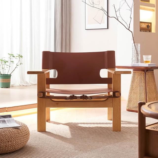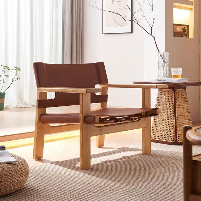 設計師馬鞍皮沙發椅 意式極簡家用靠背可調節民宿酒店輕奢休閑躺椅 MLDD251218TY