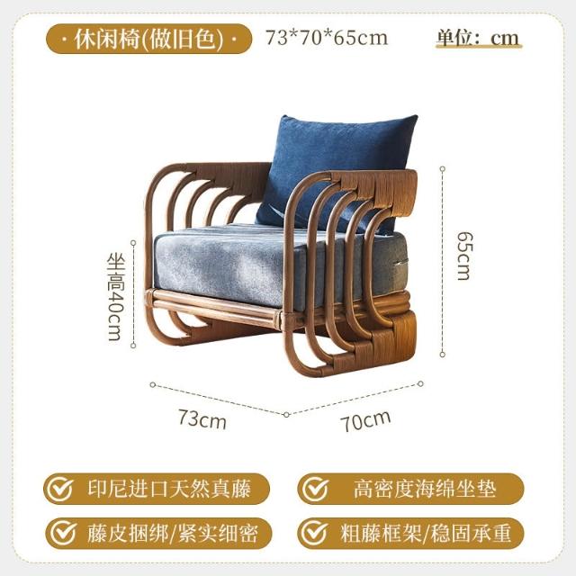 自然復古風格粗藤單人沙發侘寂風中古民宿客廳藤沙發椅 藤椅 三件套 MLDD251218TY
