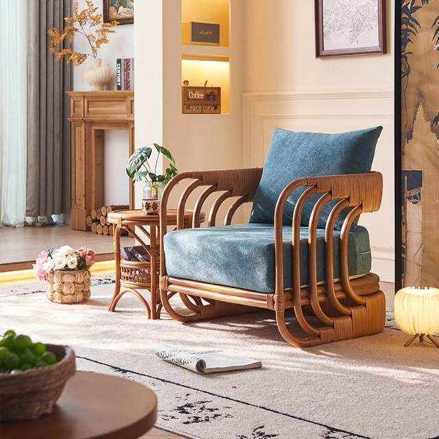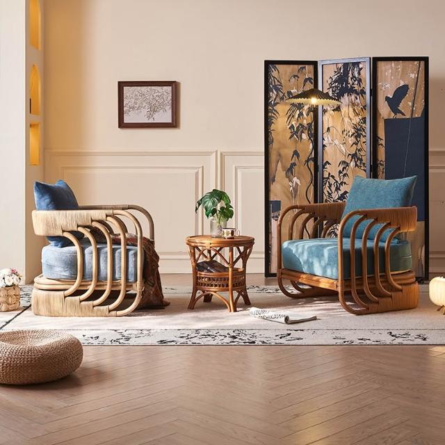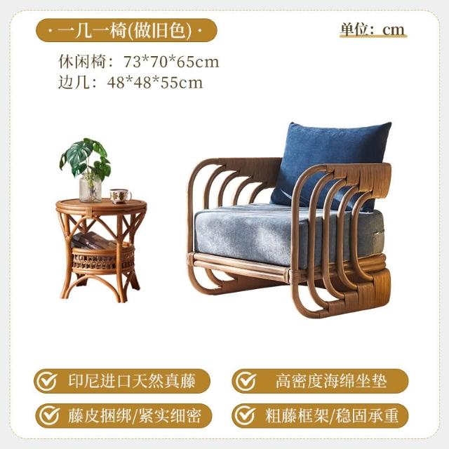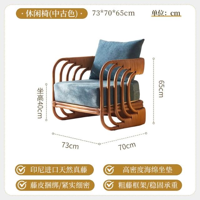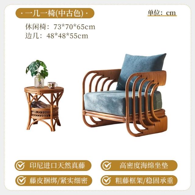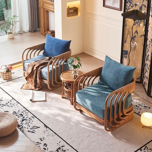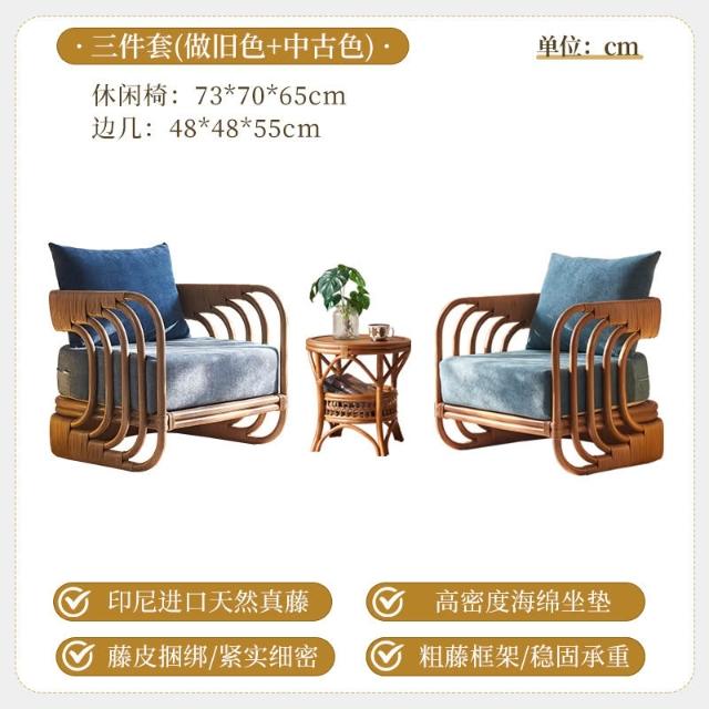 自然復古風格粗藤單人沙發侘寂風中古民宿客廳藤沙發椅 藤椅 三件套 MLDD251218TY
