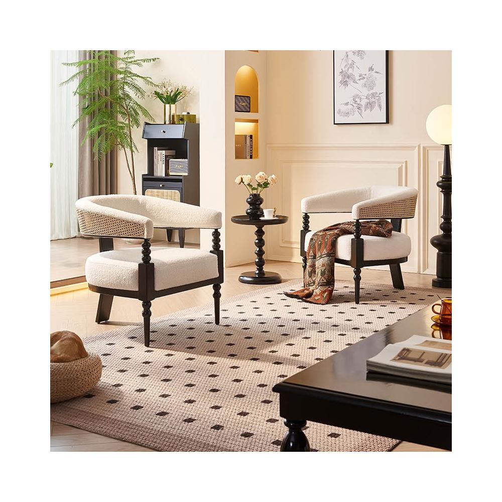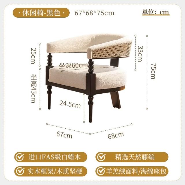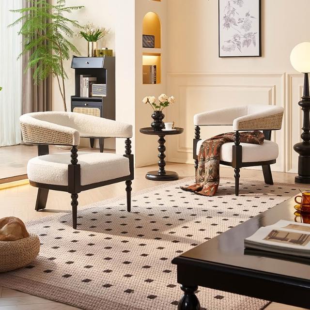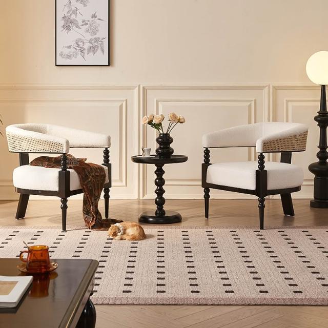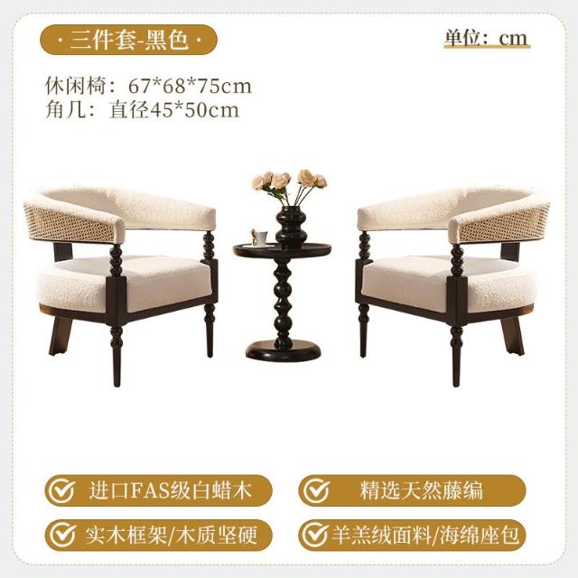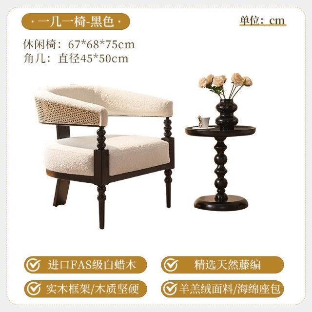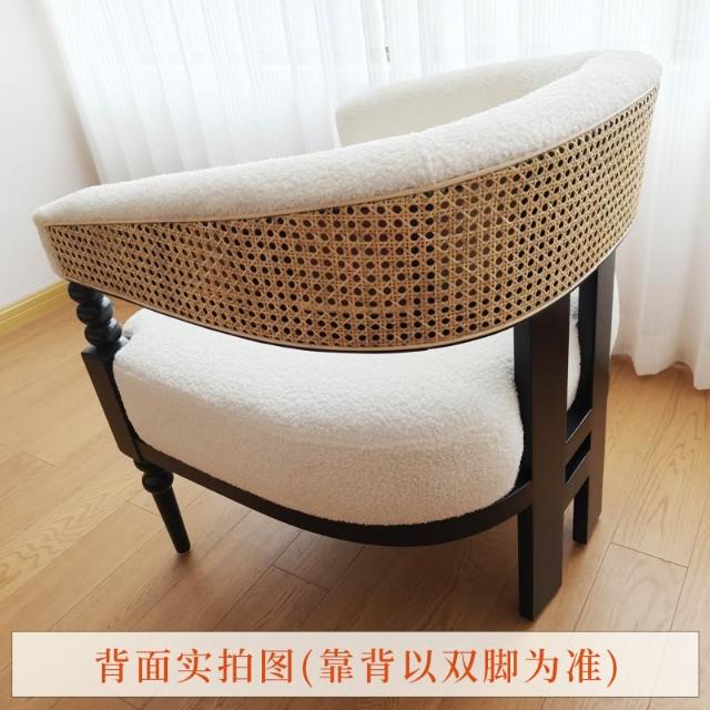 法式復古藤編實木創意單人沙發椅 酒店咖啡廳白蠟木休閑椅 邊幾組合 MLDD251218TY