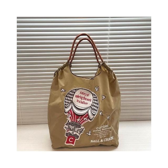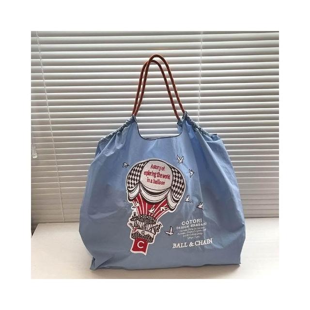 簡約日系熱氣球刺繡環保布袋女ball chain尼龍手提單肩斜跨包 MLDD251225DB