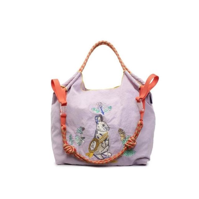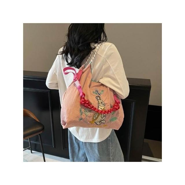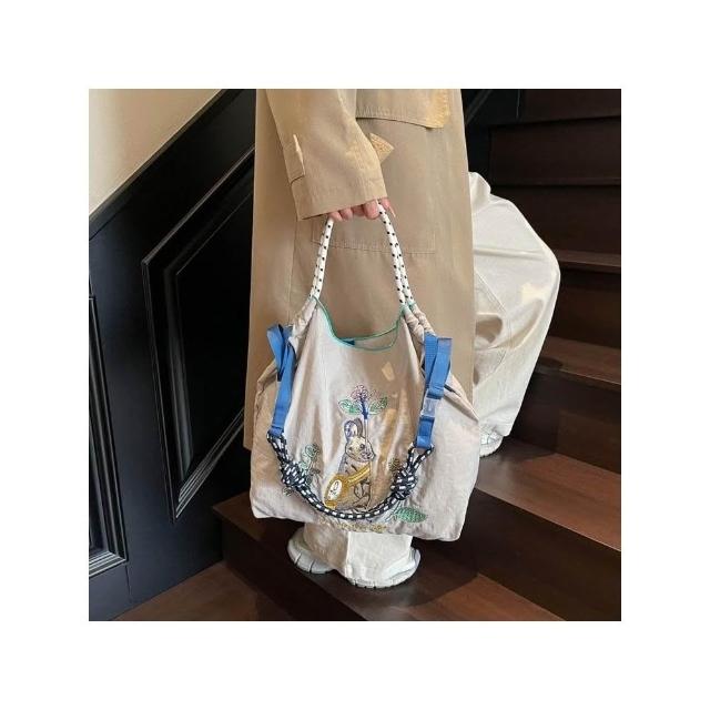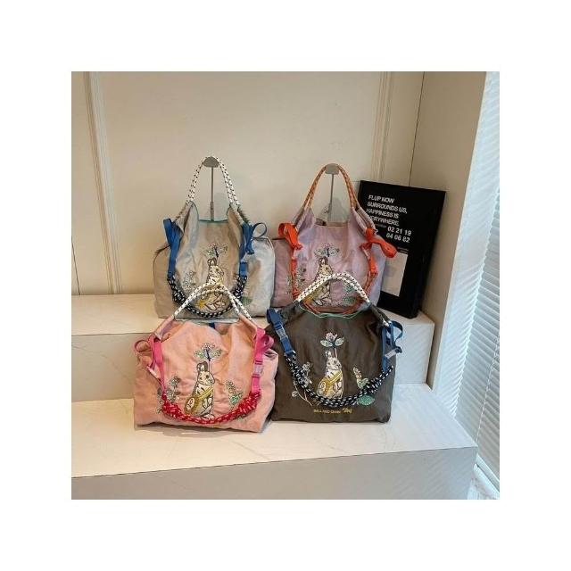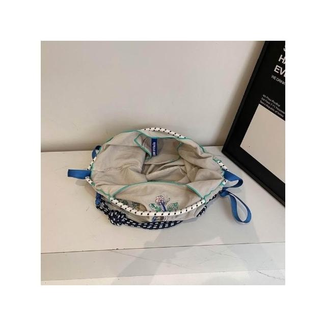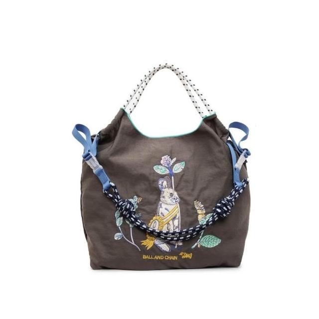 明星同款日系小眾刺繡ballchain環保袋女包購物斜挎包單肩帆布包手提袋 MLDD251225DB