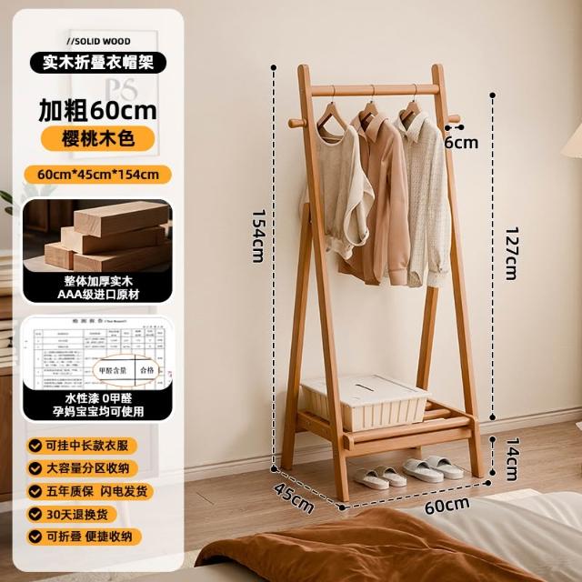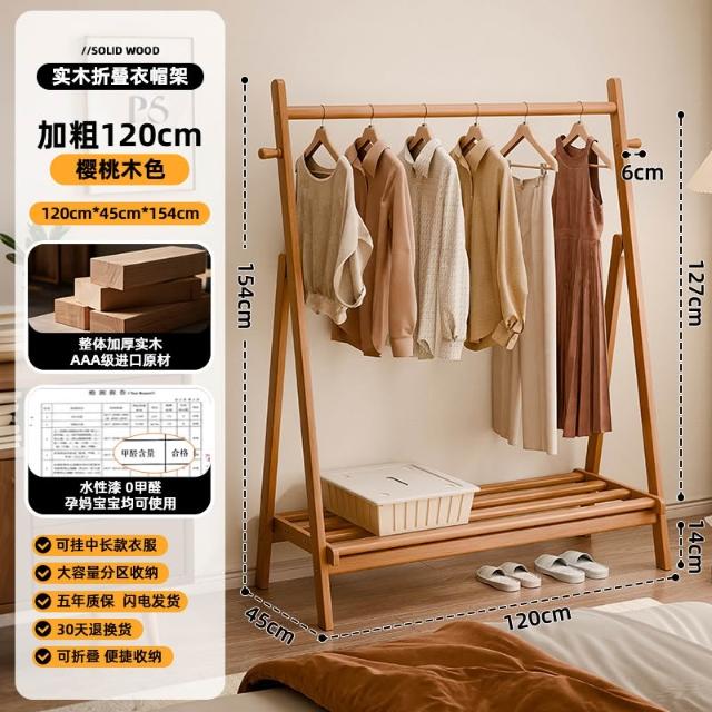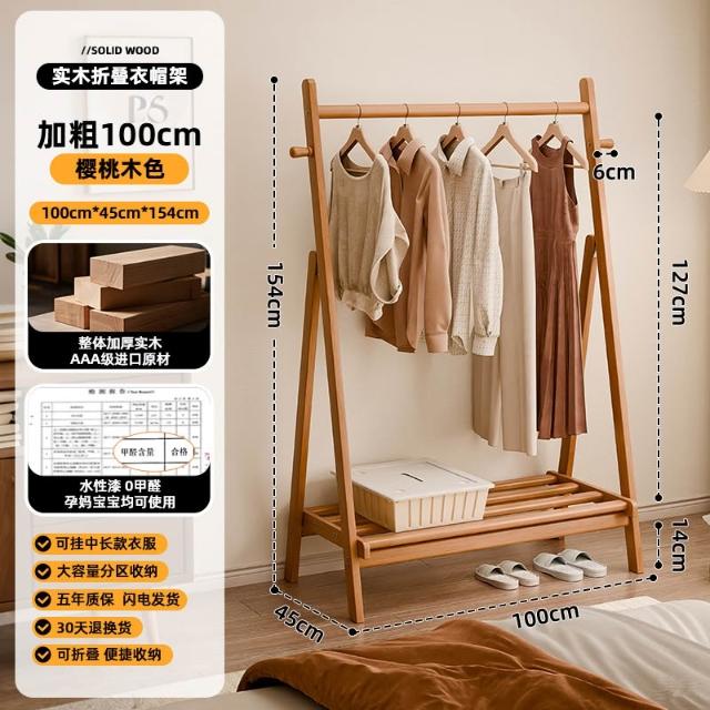 實木衣帽架 落地掛衣架 家用可折疊 晾衣架室內 衣服架子 MLDD251227JJ